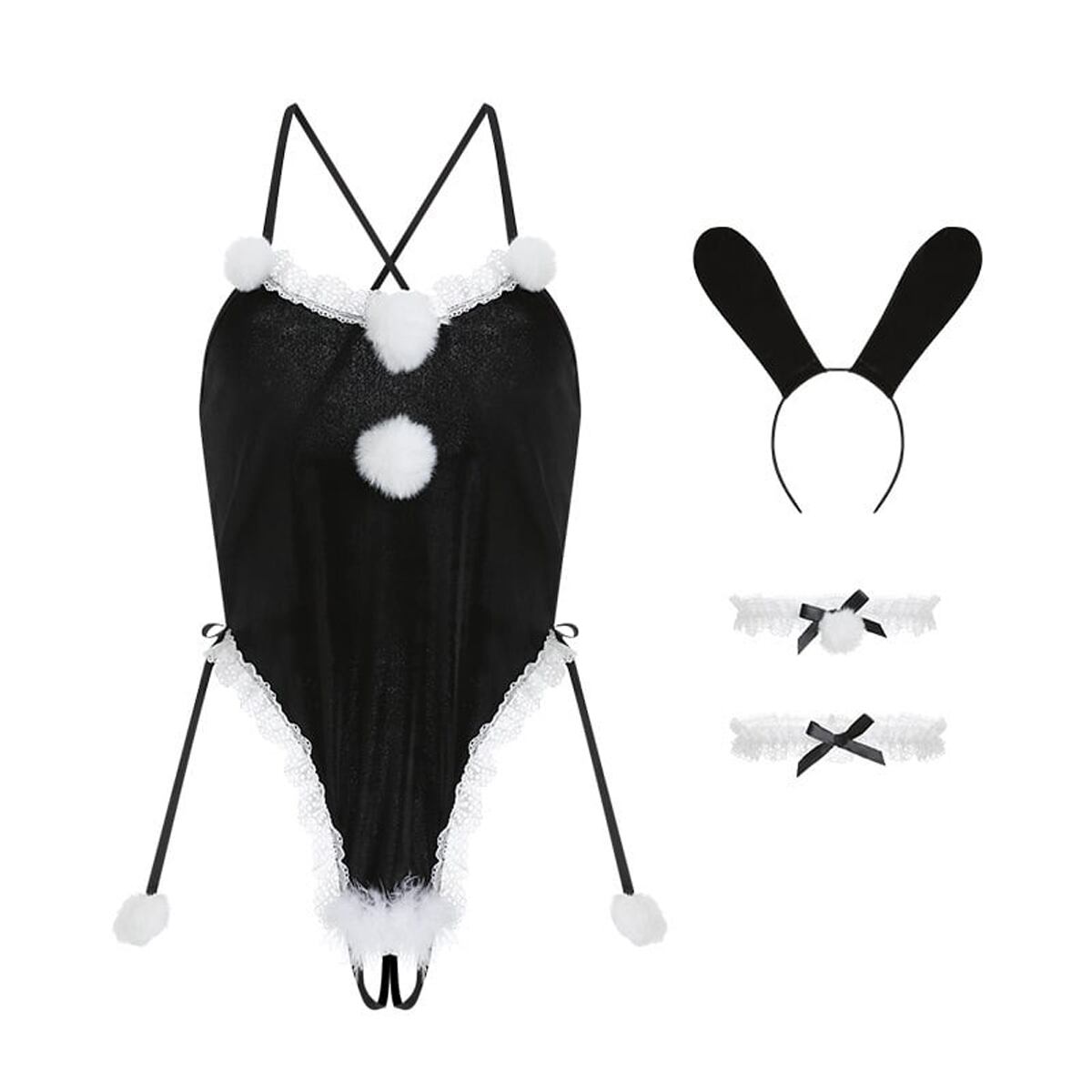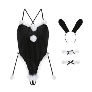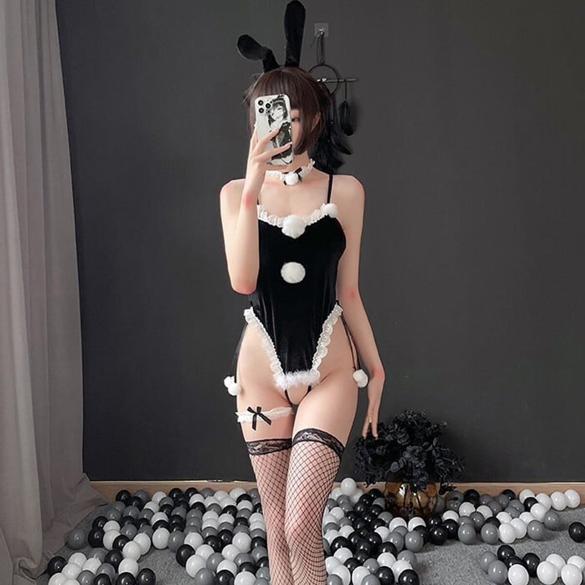 上品なベロア生地に、ふわふわのポンポンとレースをあしらった可愛いバニーガールコスチューム。