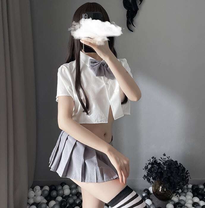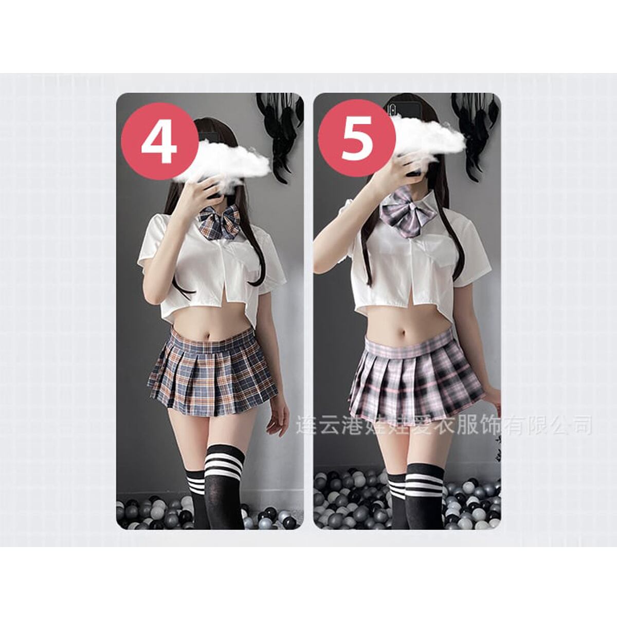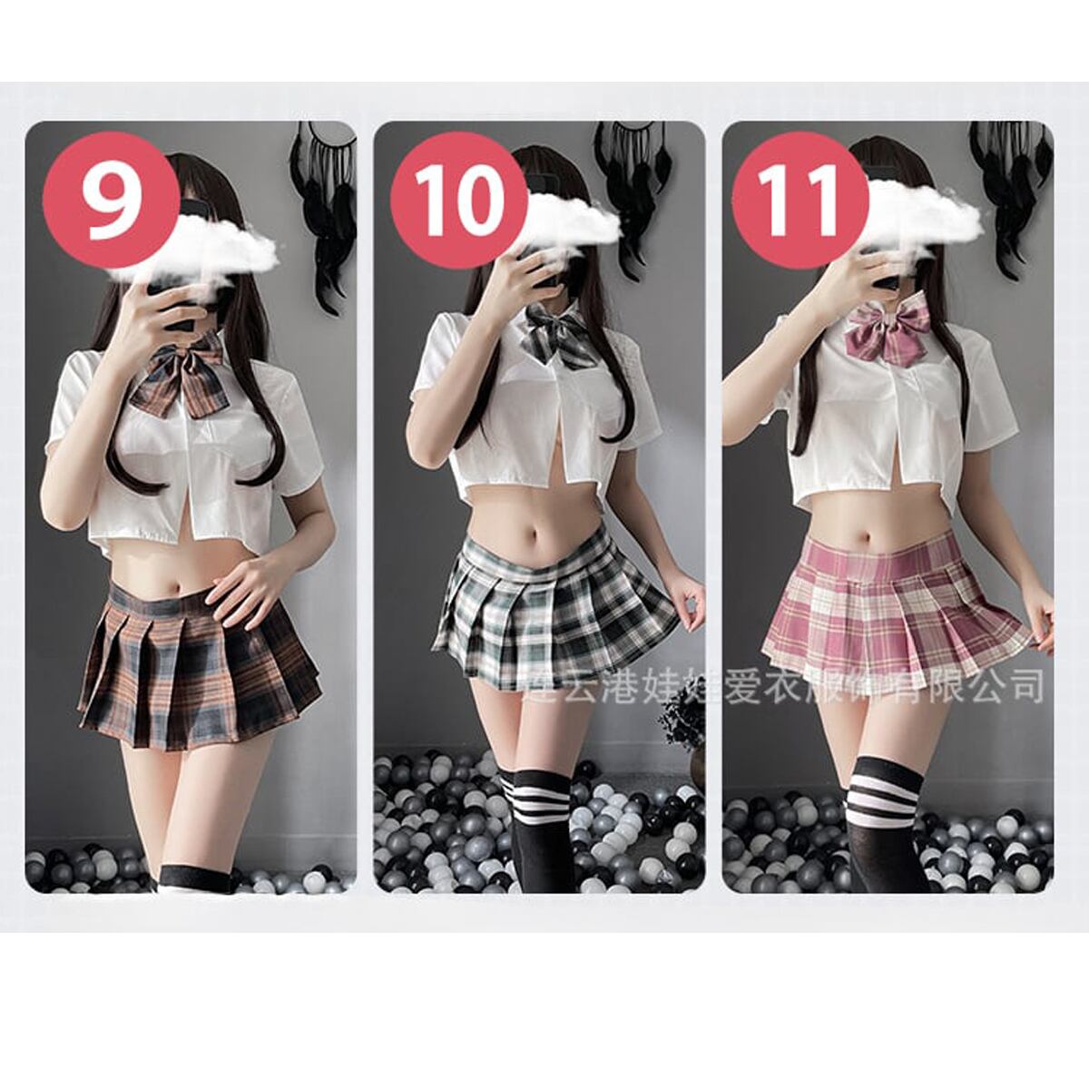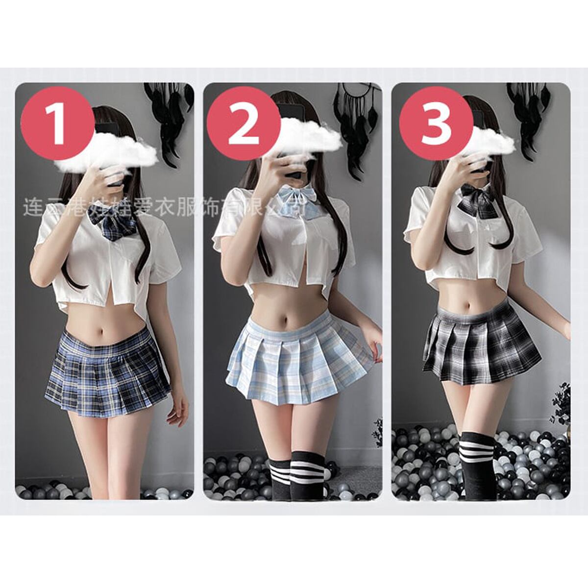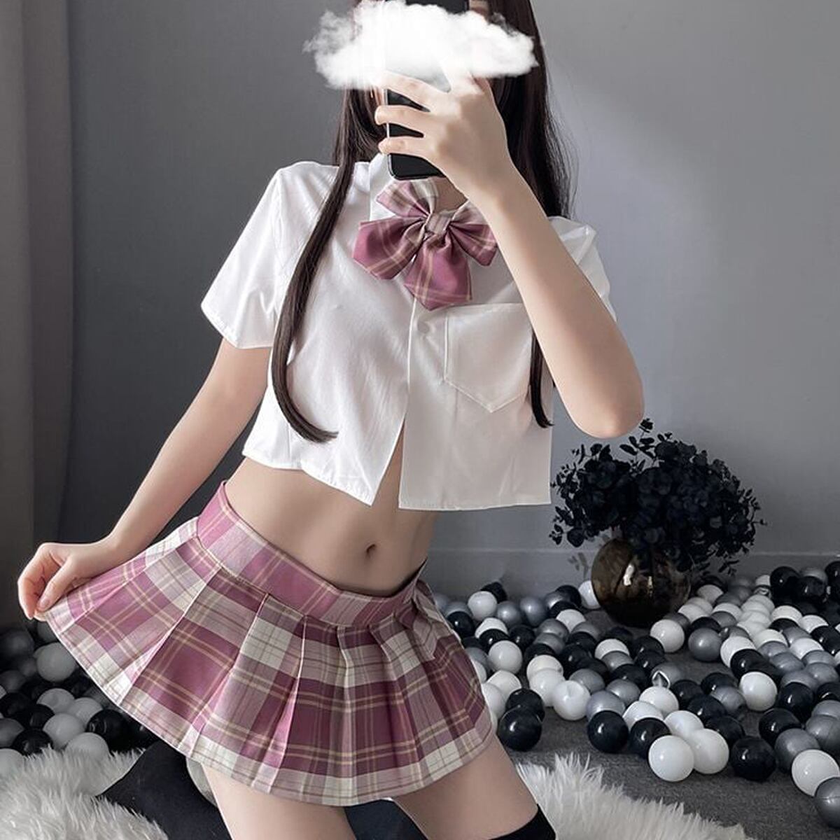 清楚なのに大胆。ショート丈シャツ×超ミニプリーツスカートの「JK風制服コスチュームセット」です。
