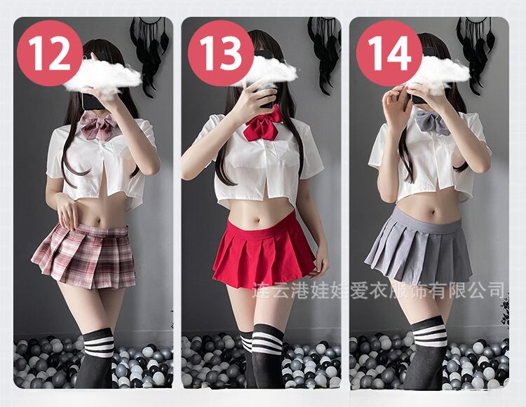 14カラー選べるJK風ミニ制服コスチュームセット(トップス+スカート+リボン)