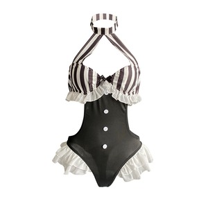 モノトーンのストライプとフリルの組み合わせが上品でキュートな、バニースタイルのワンピースコスチューム。