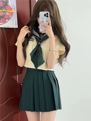 【3color】3カラーから選べる セーラー半袖制服6点セットコスチューム