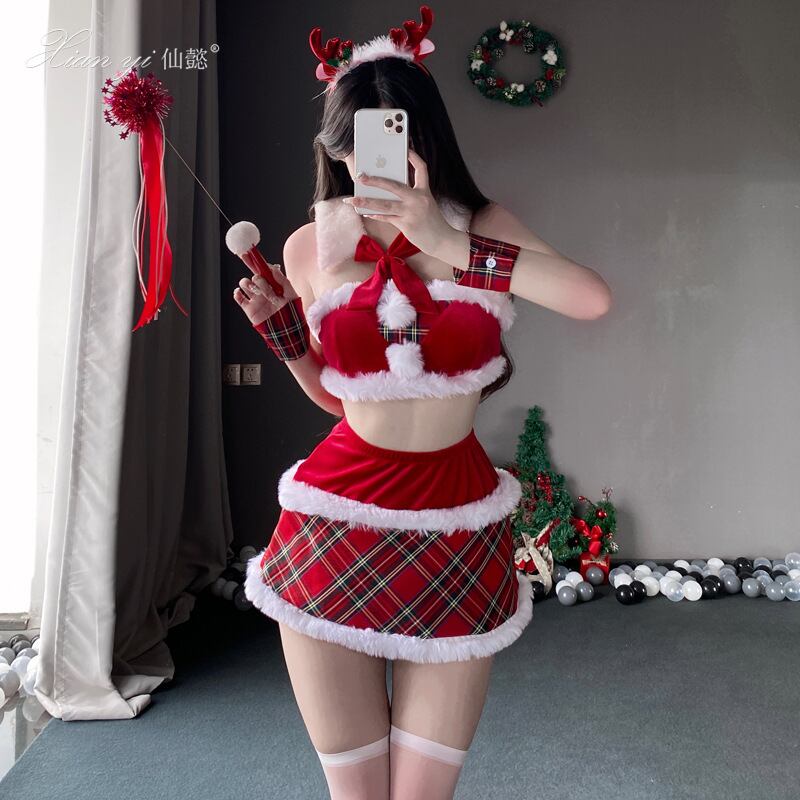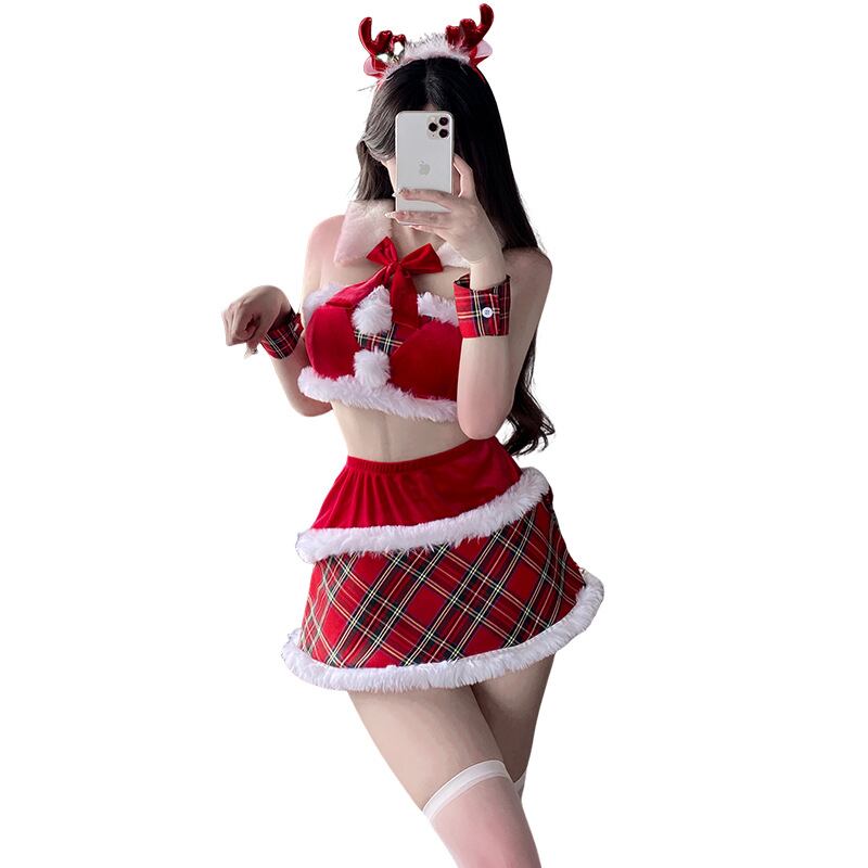 アクセサリーも豊富で、トナカイ風カチューシャ、ファー襟巻き、手首リストバンド、セクシーブラ、スカートの5点セット。