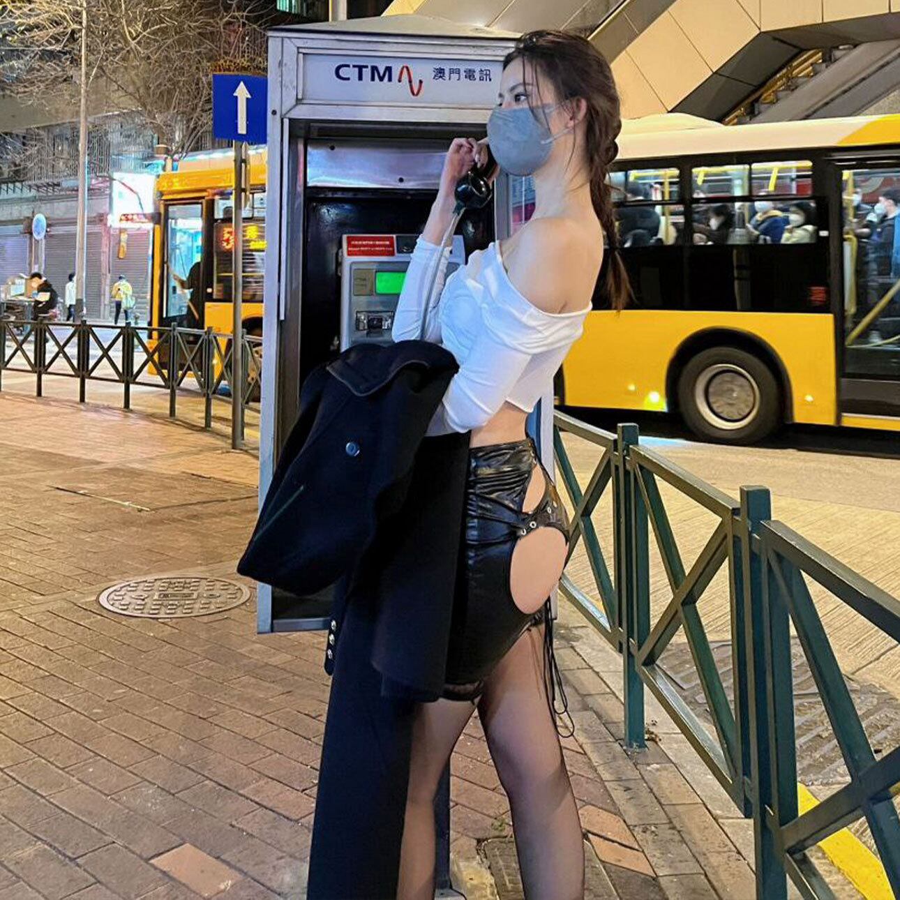 #オープンバックスカート #レザースカート #セクシーコーデ #編み上げスカート #大胆ファッション #フェティッシュコーデ #夜コーデ #撮影衣装 #映えスカート #美尻コーデ #クラブファッション #大人の色気
