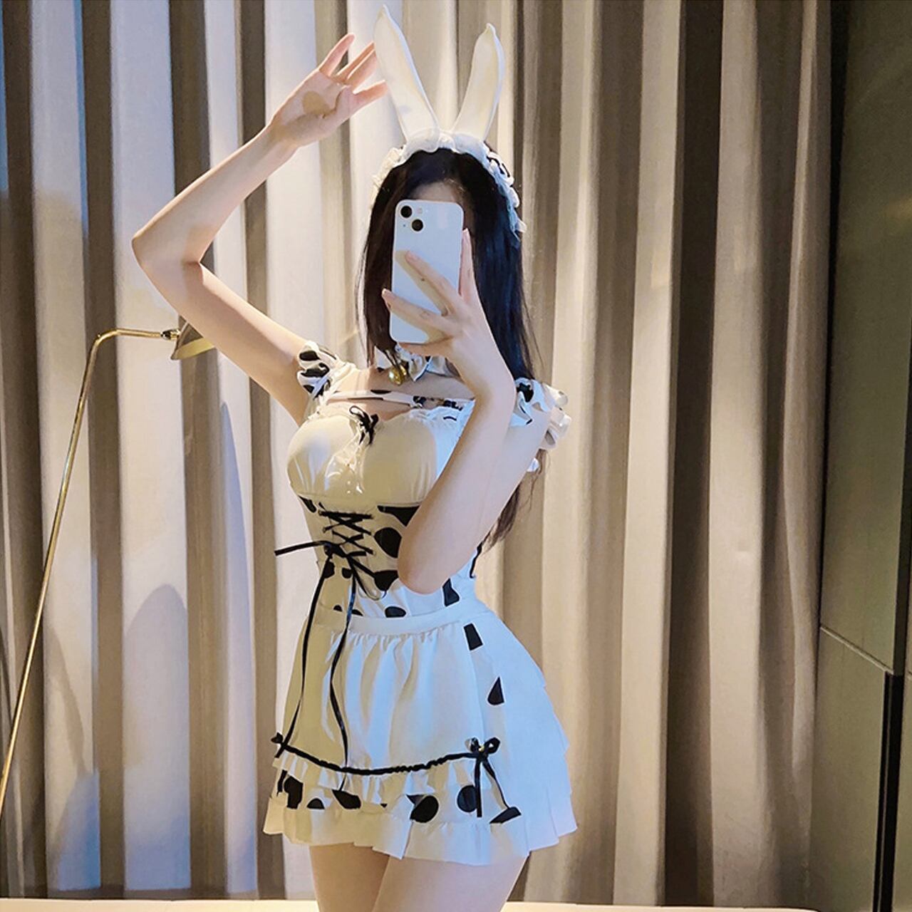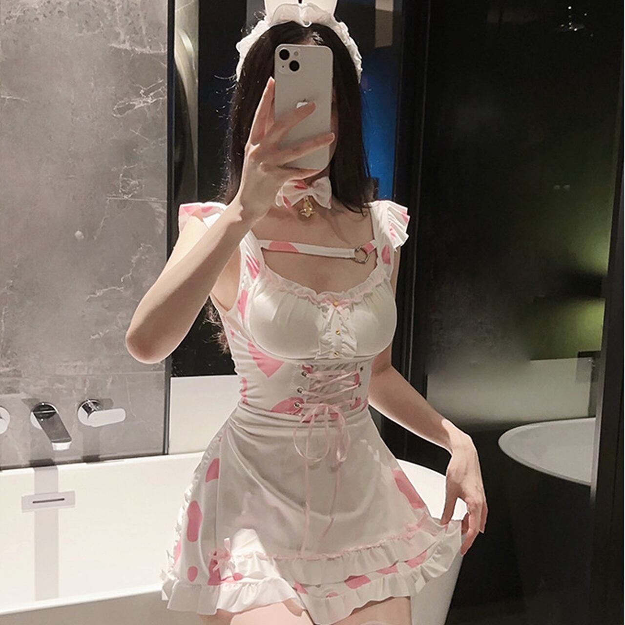 #牛柄コスプレ #メイドコスチューム #うさ耳女子 #ピンクコーデ #セクシーワンピ #コスプレ女子 #ナイトワークコーデ #ハロウィン衣装 #SNS映え #彼ウケコーデ #推し活コスチューム