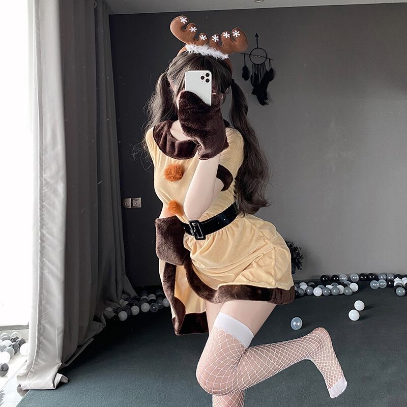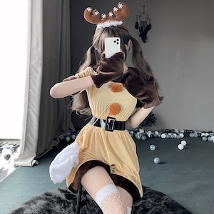 やわらかなベルベット調素材で仕上げた、トナカイモチーフのクリスマスコスチューム。