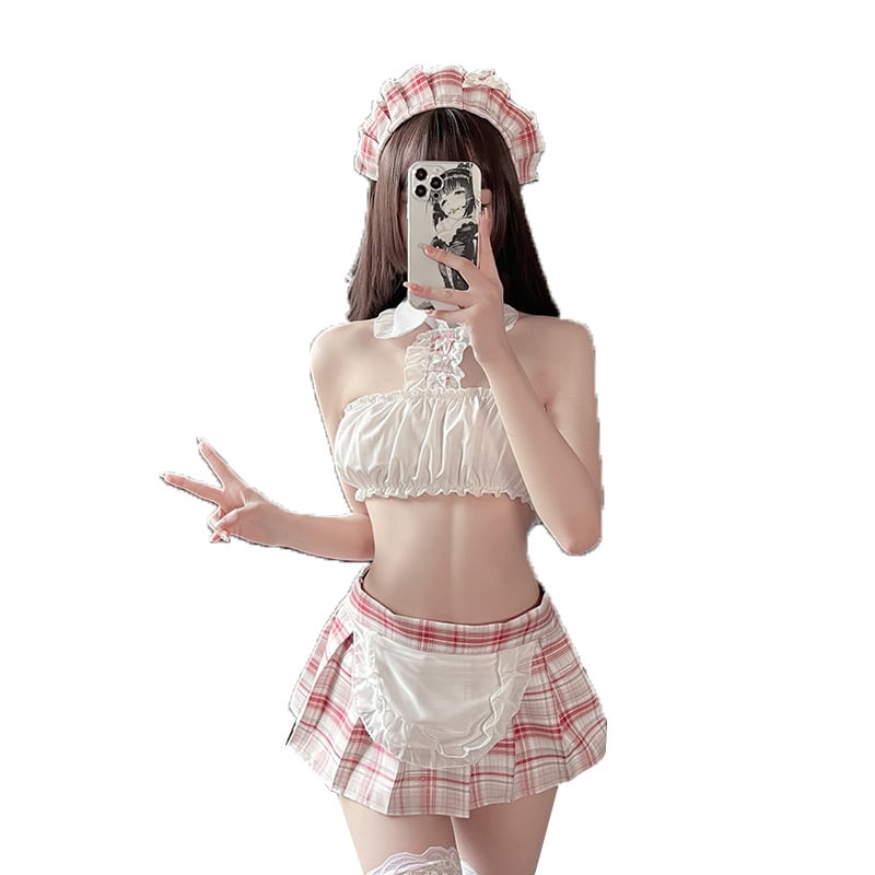 【メイドコスプレ】バックオープン・チェックガーリーメイドセット|大人可愛いランジェリー風コスチューム