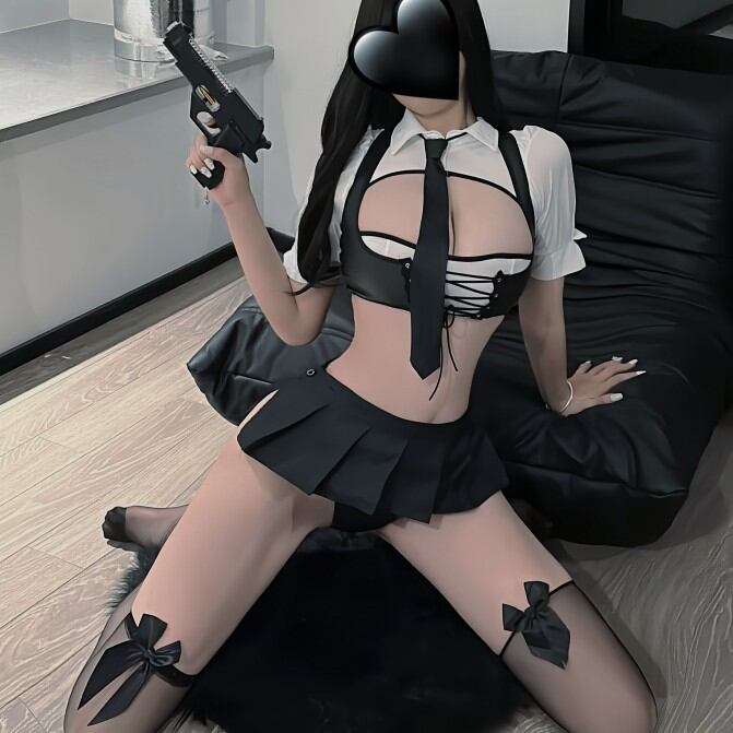 【ポリス風コスプレ】大胆×モードなガンガール風セットアップ|アシンメトリークロップドトップ×ミニプリーツスカート