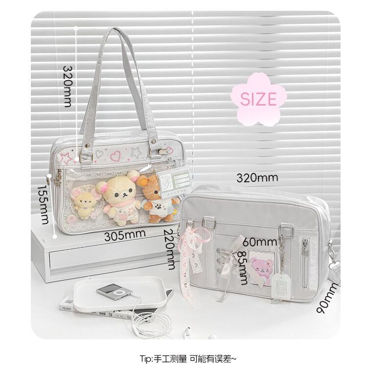 2Way透明デコ×リボン装飾 JK痛バッグ|推し活・通学・イベント対応ショルダー&ハンドバッグ