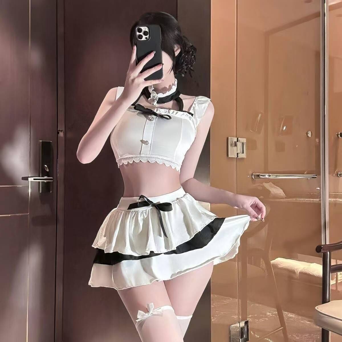 おうちデートや撮影コスチュームとしてもおすすめな、学生風×色気を程よくミックスした甘辛セクシーな一着です。