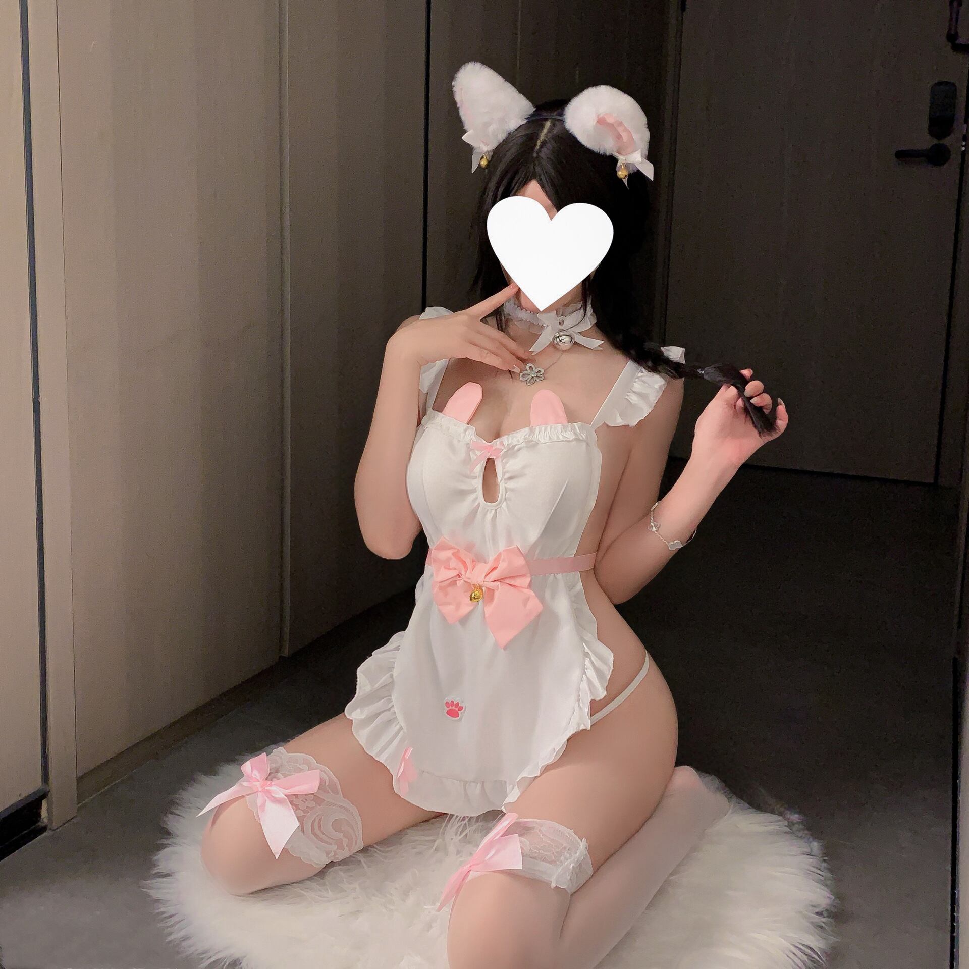 セット内容:エプロンメイド服、Tショーツ、うさ耳カチューシャ、レースチョーカー、ニーハイストッキング