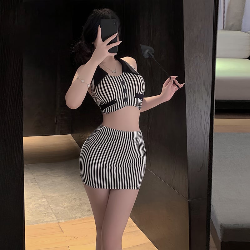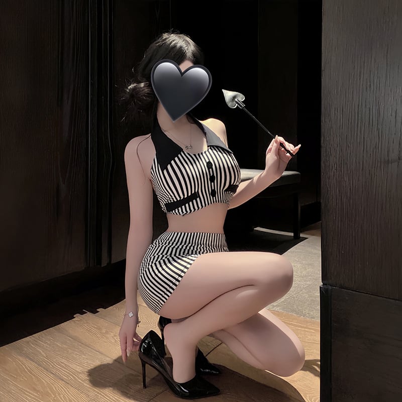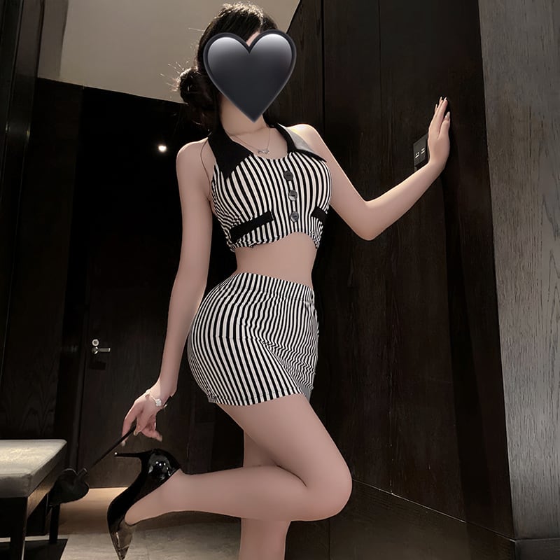 〔オフィス〕ストライプビスチェ×ミニスカ セクシーセットアップ