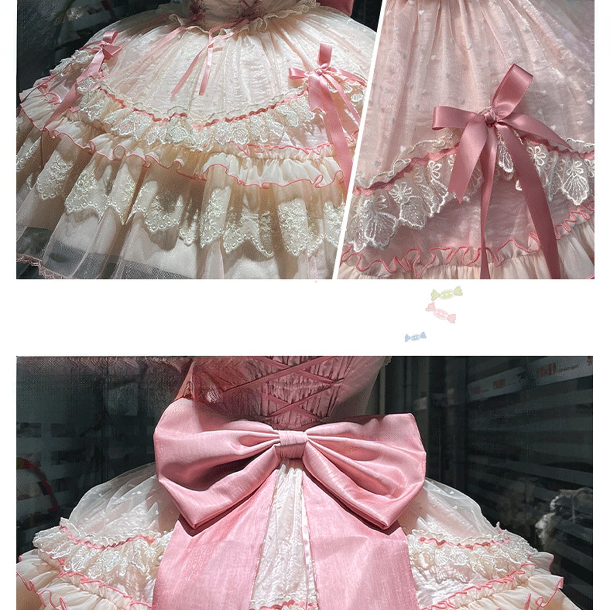 〔ロリータ〕スイートキャンディロリータドレス(ピンクJSK・リボンレースワンピース)