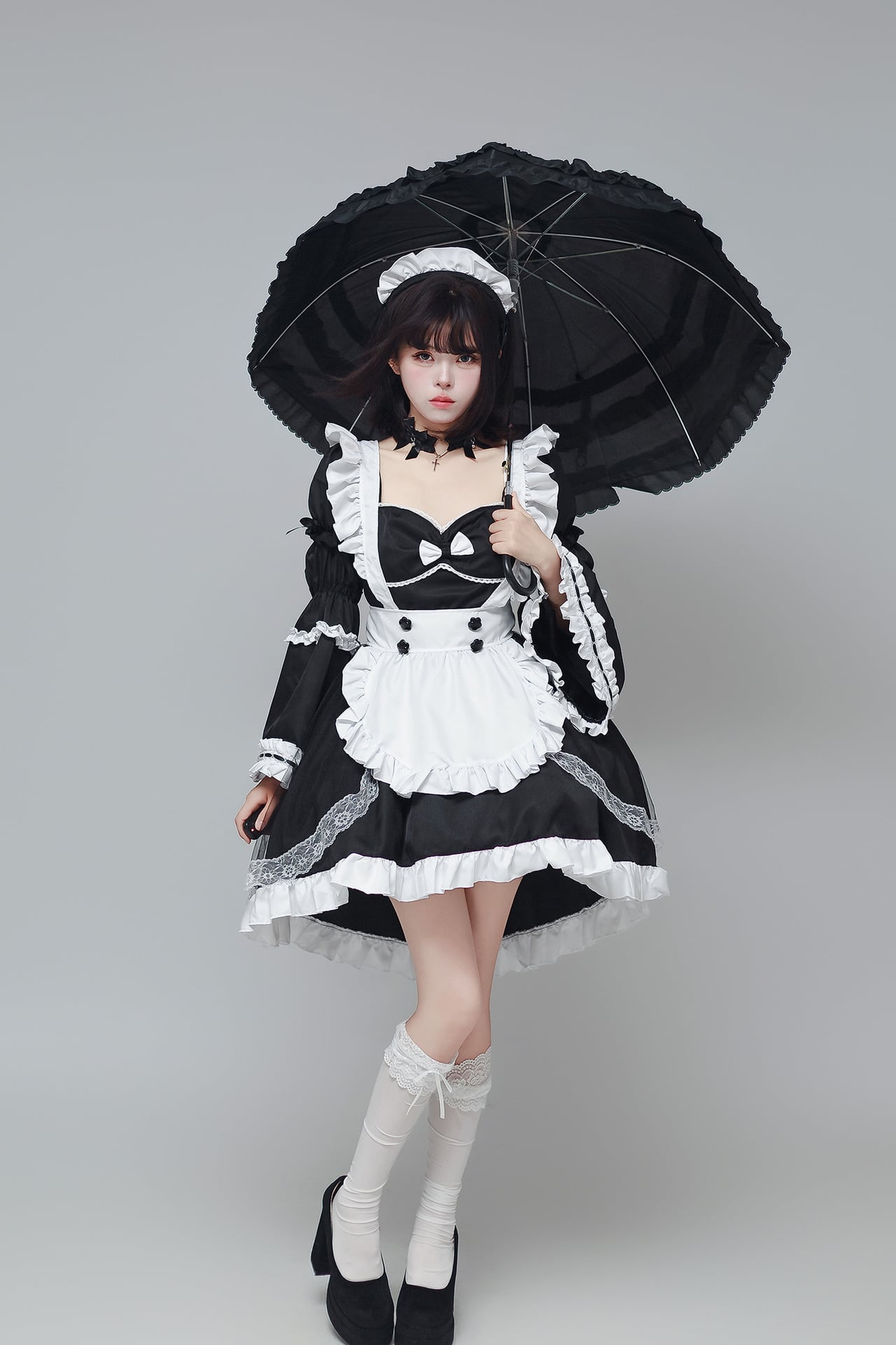 ドレス + エプロン + ベールカバー + 長袖 2 枚 + ネックレス + ヘッドピース + リボンヘアクリップ 2 個