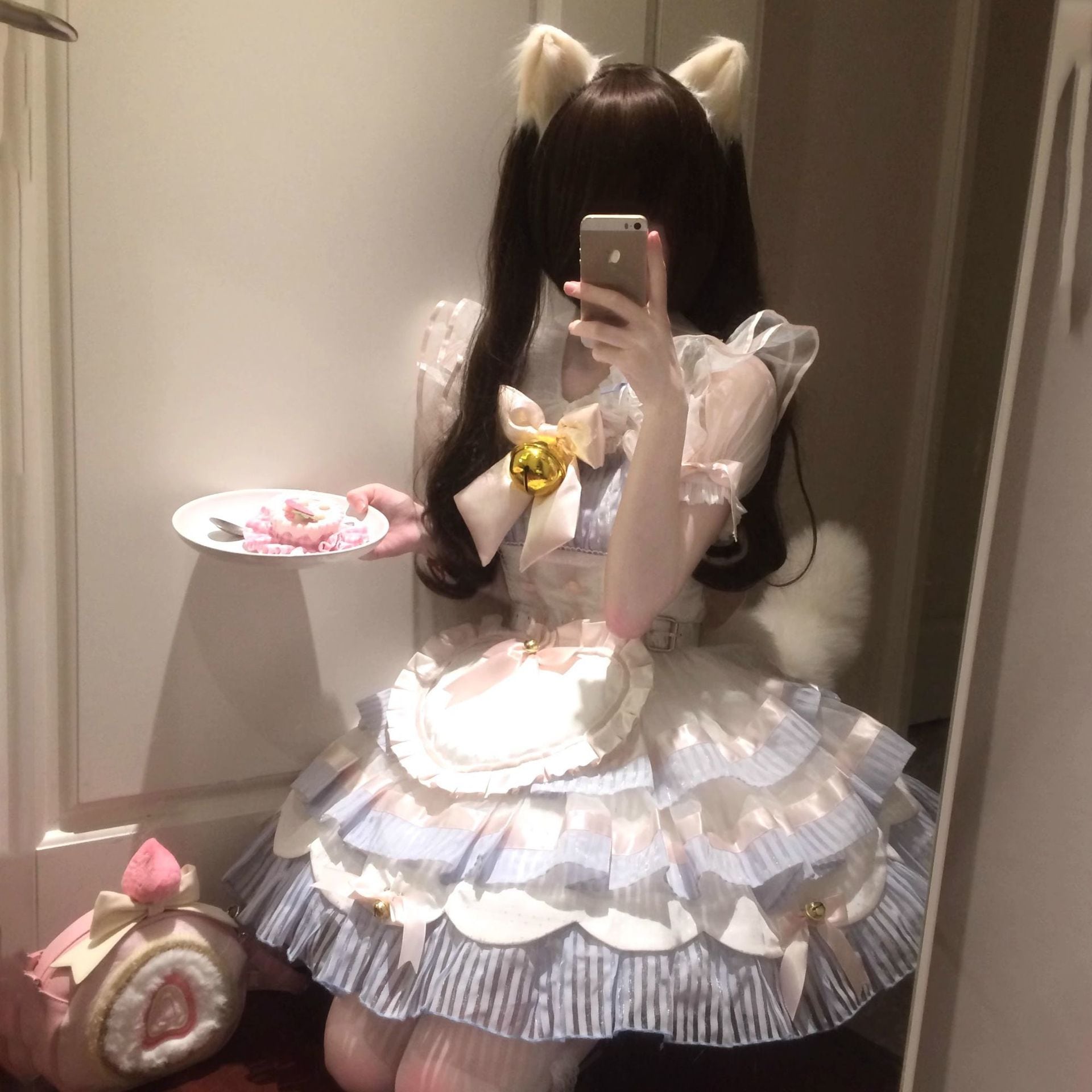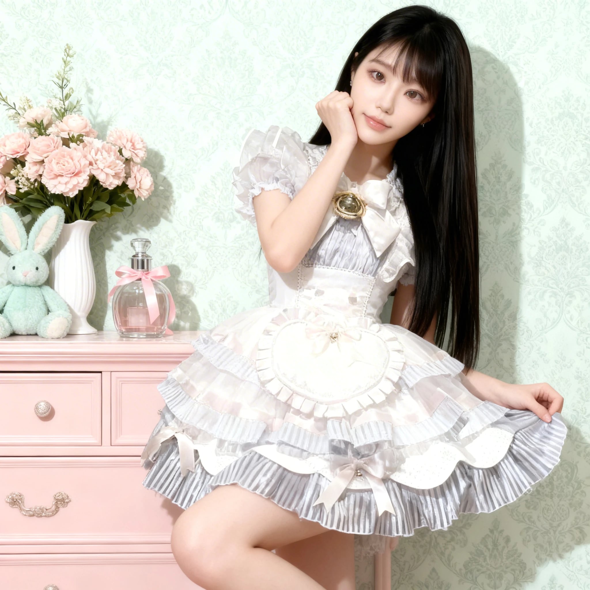 〔メイド〕ハートエプロンメイドコスチューム|フリルリボン付きロリータメイドドレス