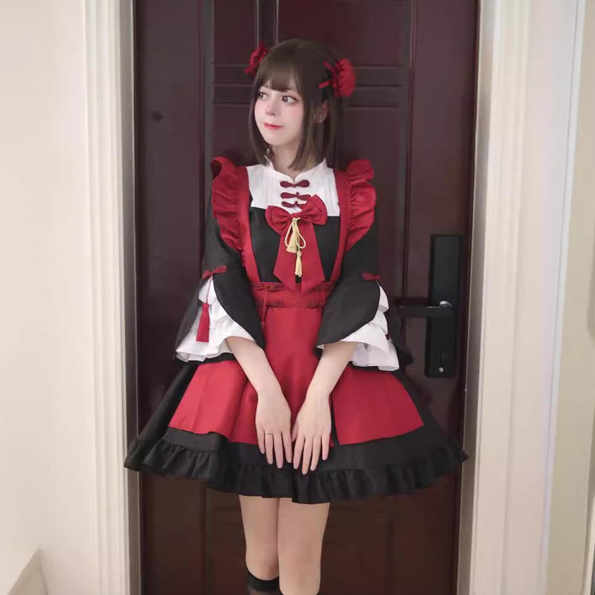〔メイド〕和風メイドコスチューム|和風リボンエプロンドレス