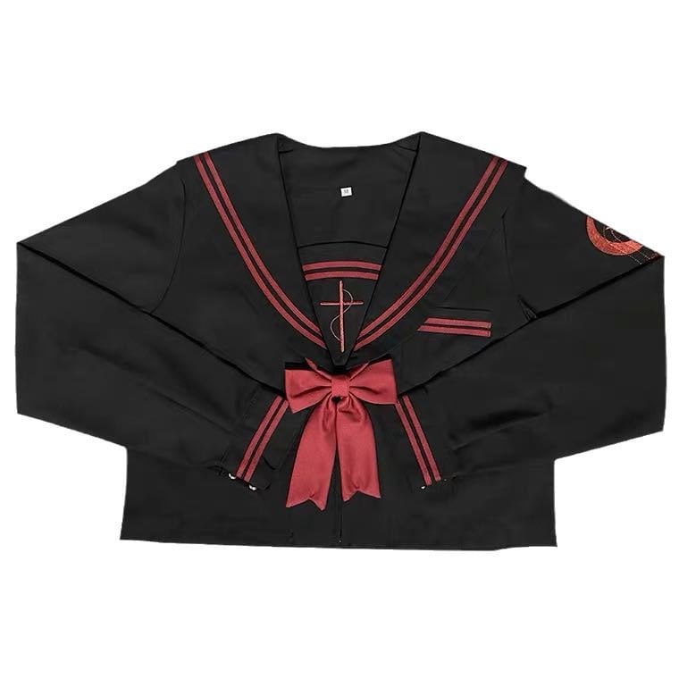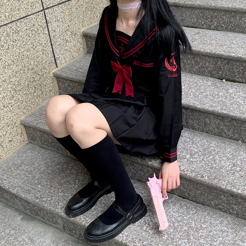 〔制服〕地雷系セーラー服コスチューム|ブラック×レッド セーラー制服セット(長袖トップス+プリーツスカート)地雷系セーラー服コスチューム|ブラック×レッド セーラー制服セット(長袖トップス+プリーツスカート)