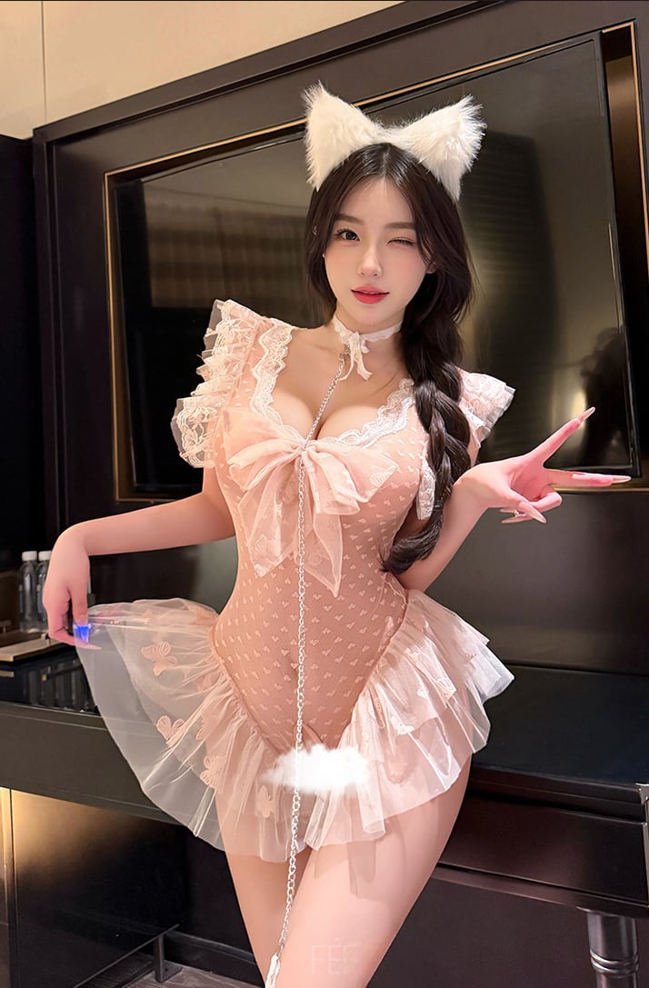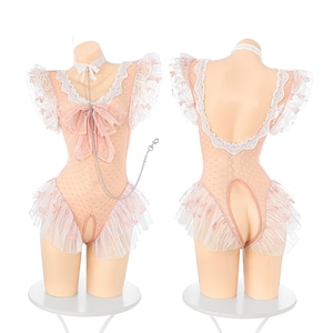 〔ランジェリー〕スイートハートチェーンランジェリー|ピンクレースフリル ボディスーツ コスチュームセット
