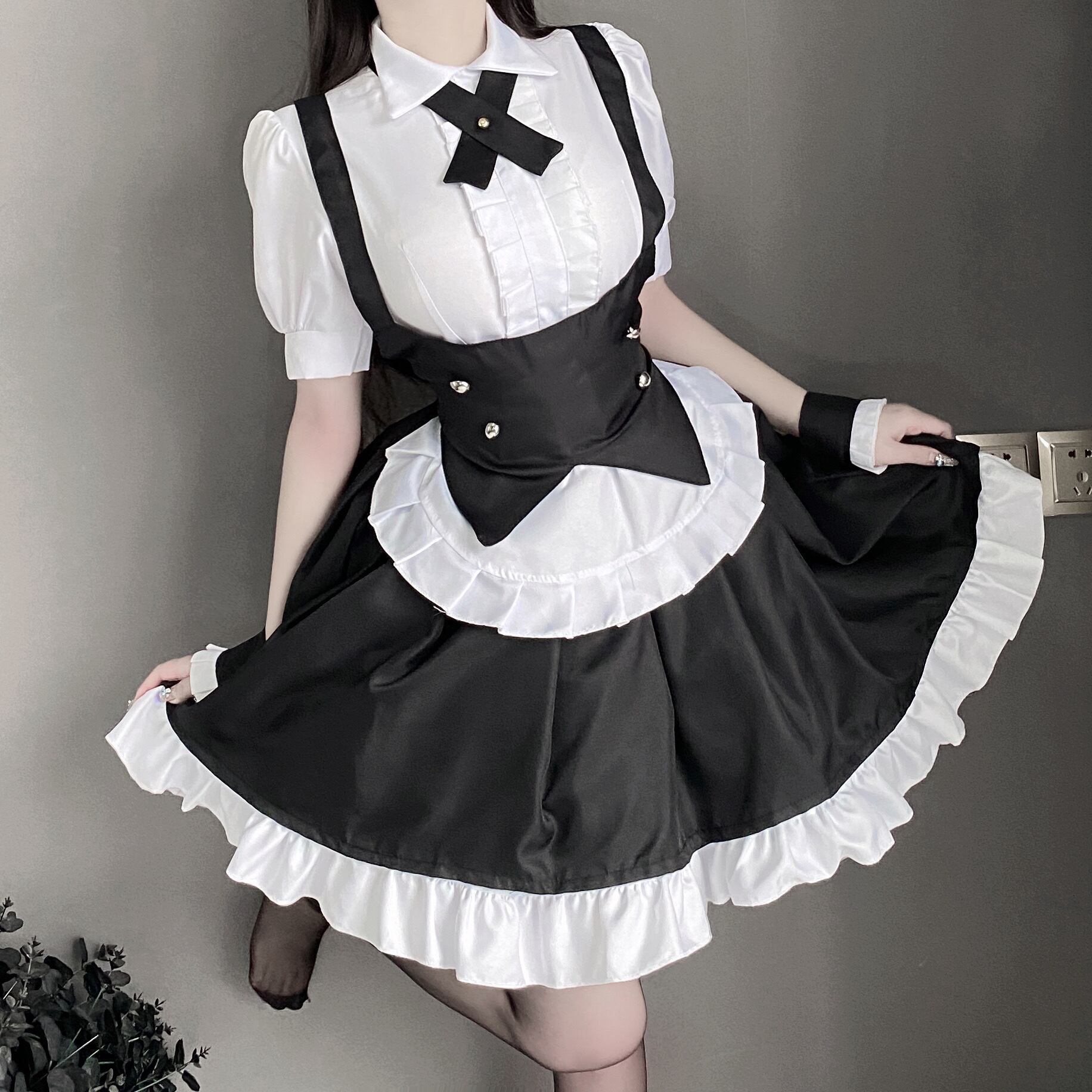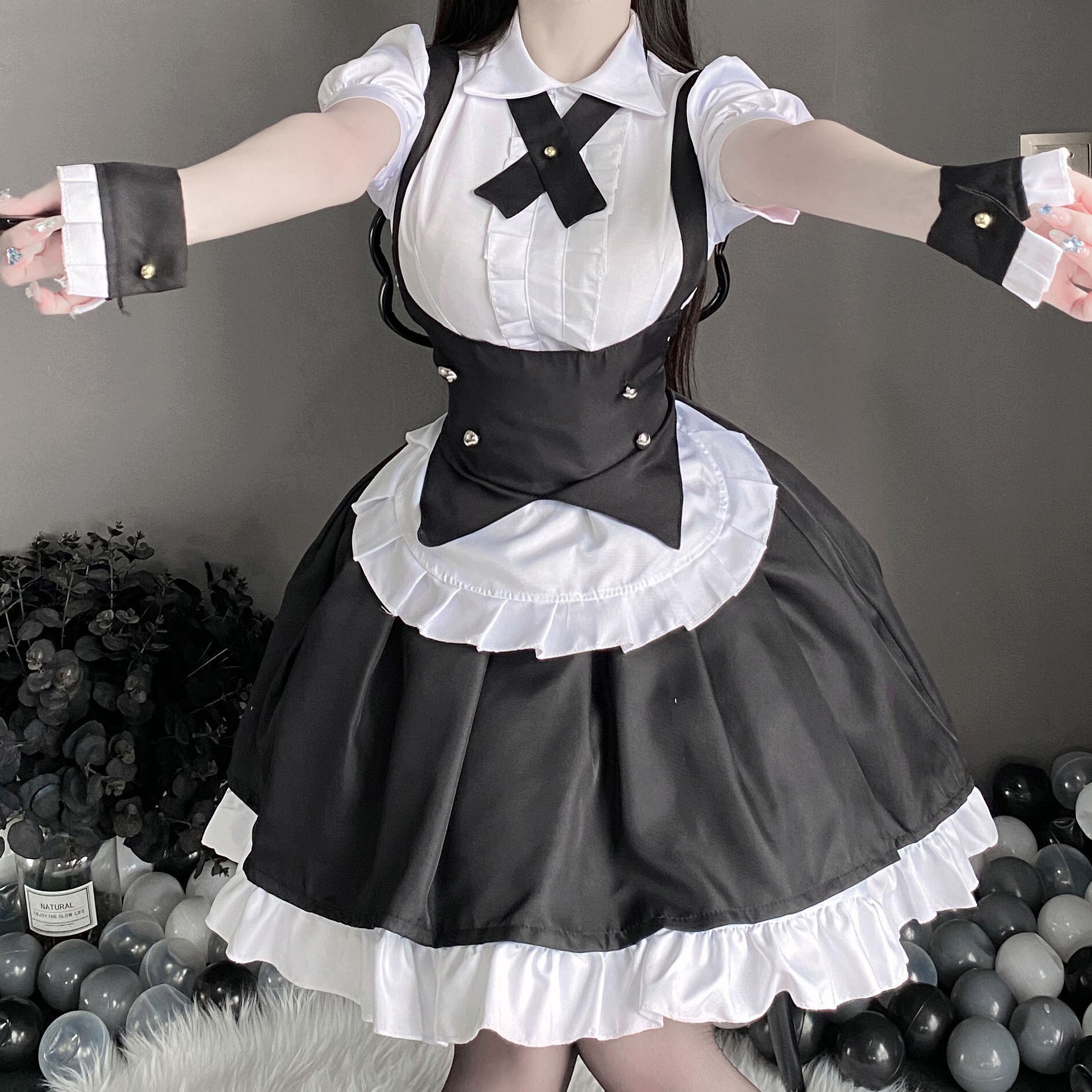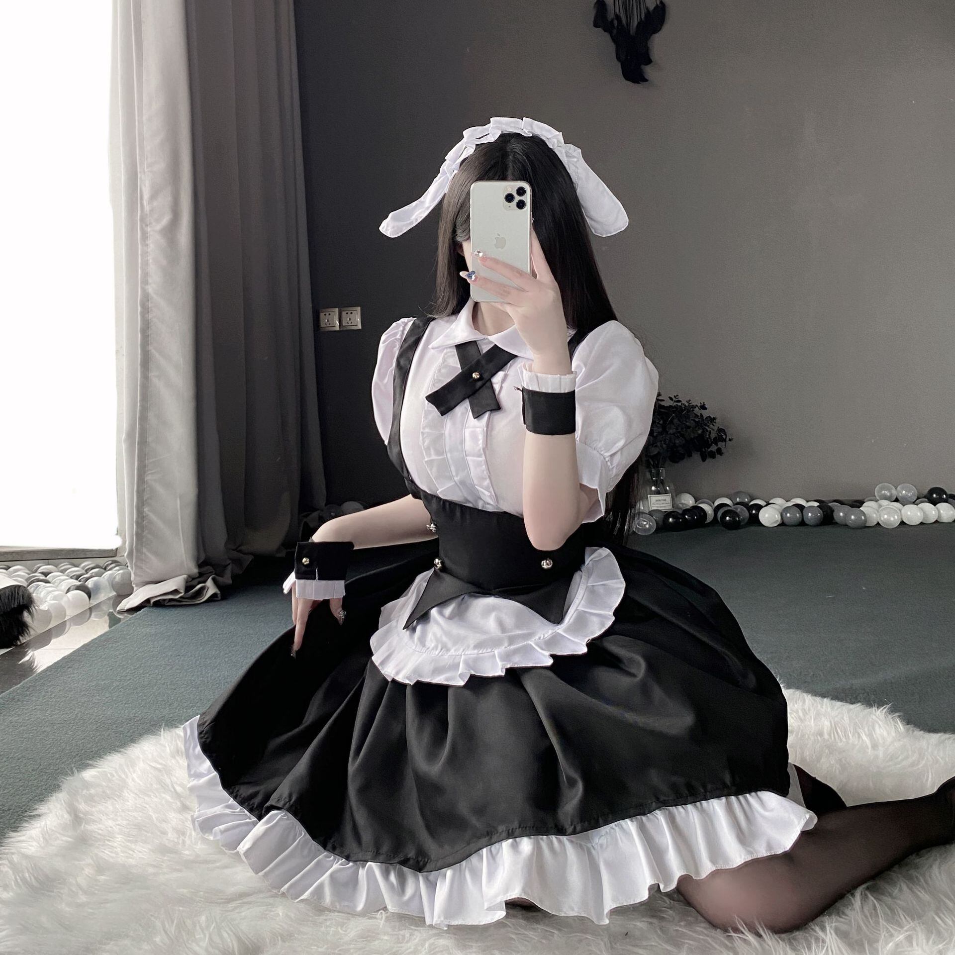 〔メイド〕メイド風ロリータワンピースセット|クラシカル白黒フリルコスチューム