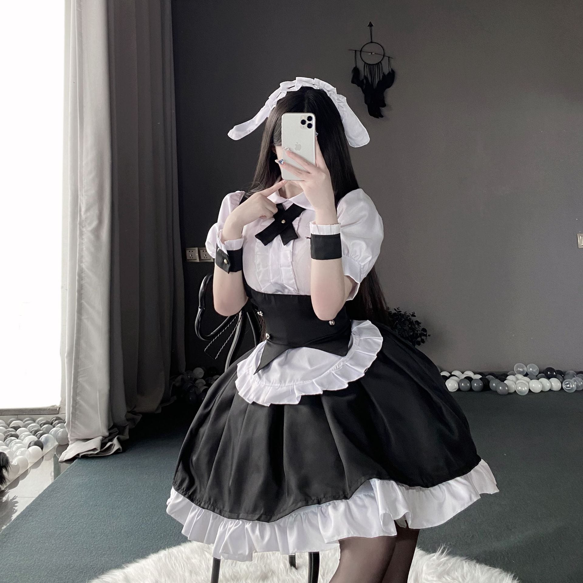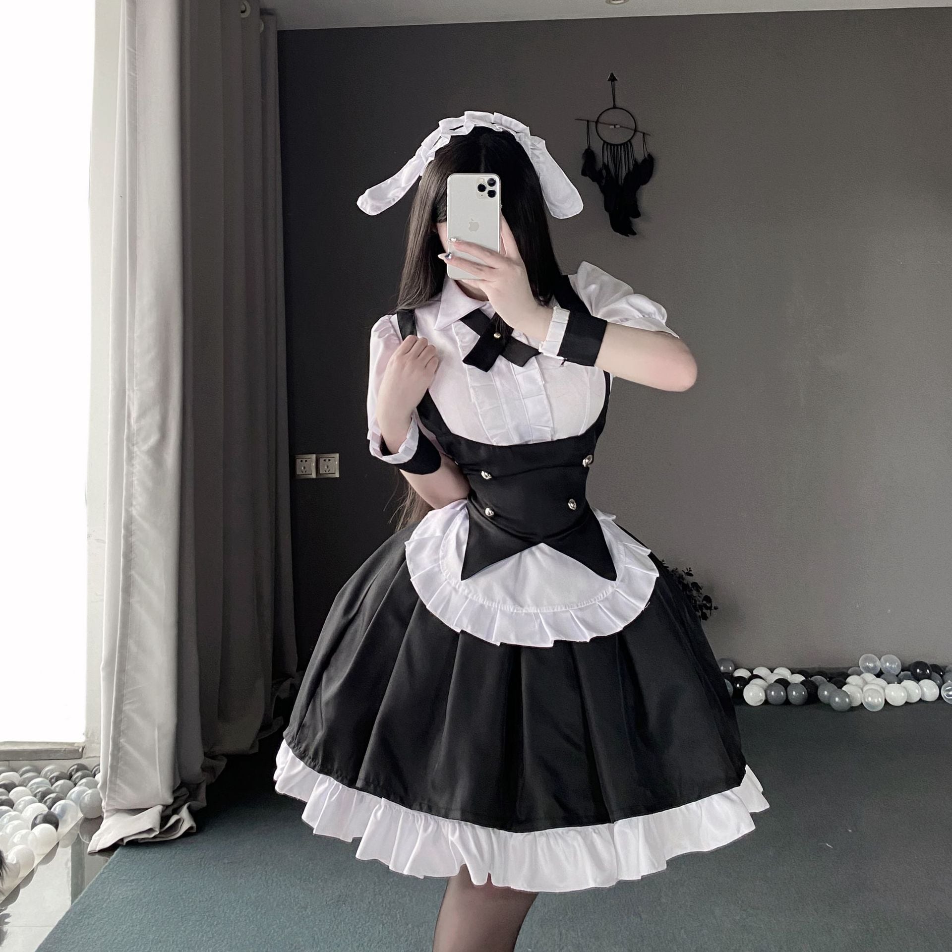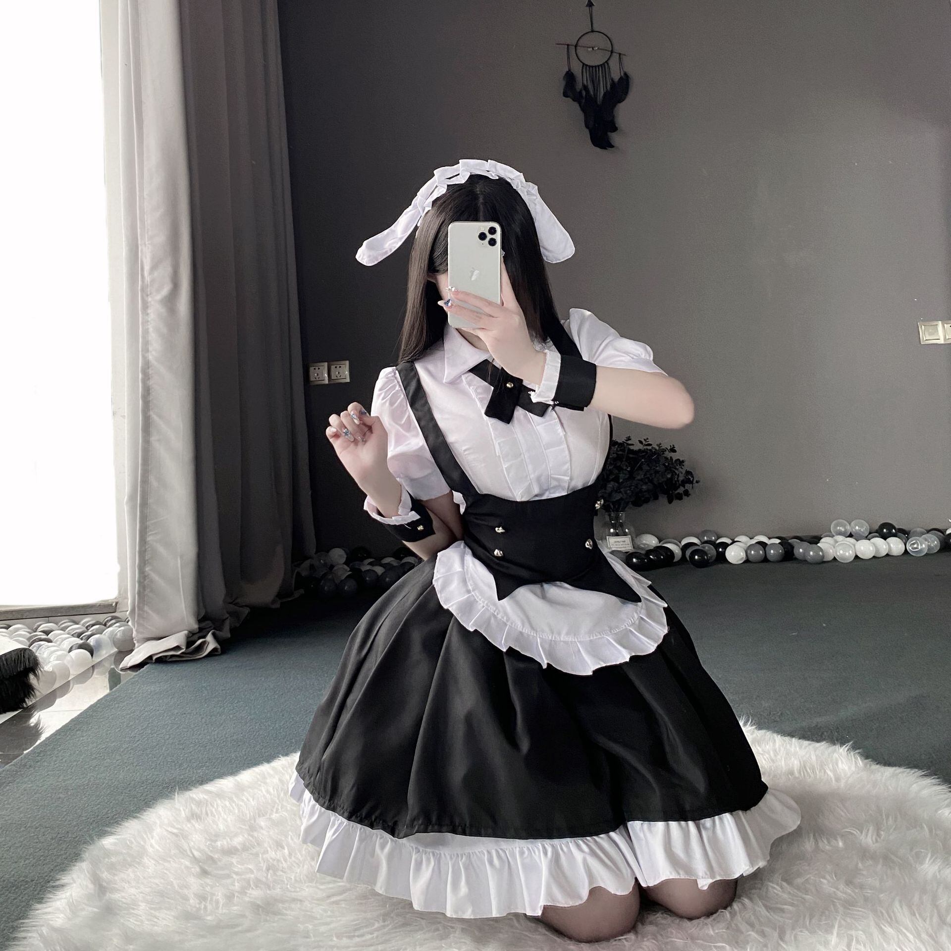 〔メイド〕メイド風ロリータワンピースセット|クラシカル白黒フリルコスチューム