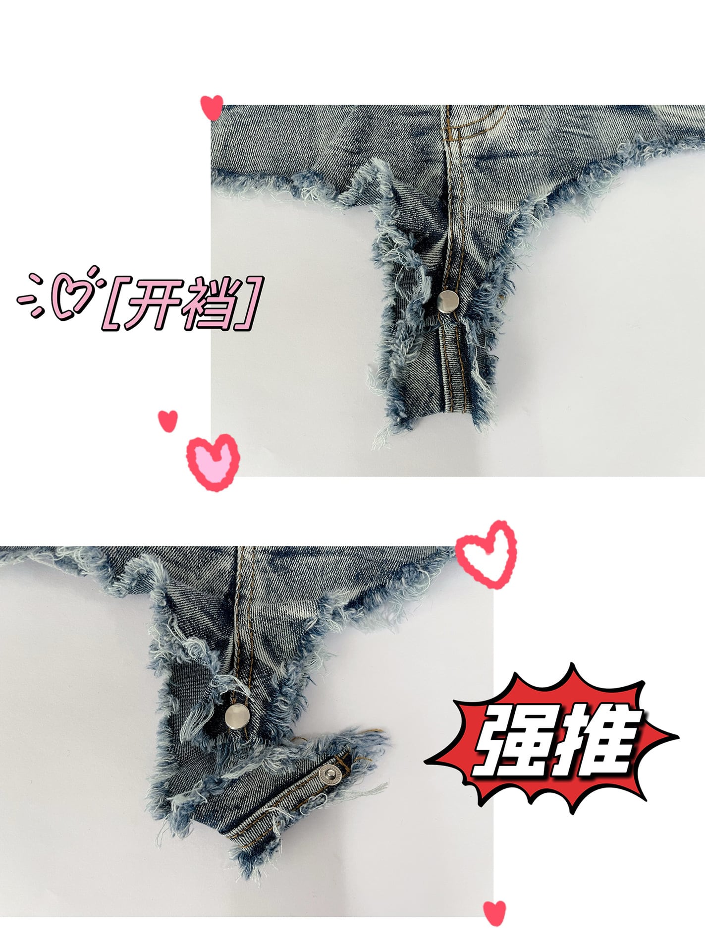 オープンクロッチ仕様 ダメージデニム風セクシーショーツ(ハイレグカット)