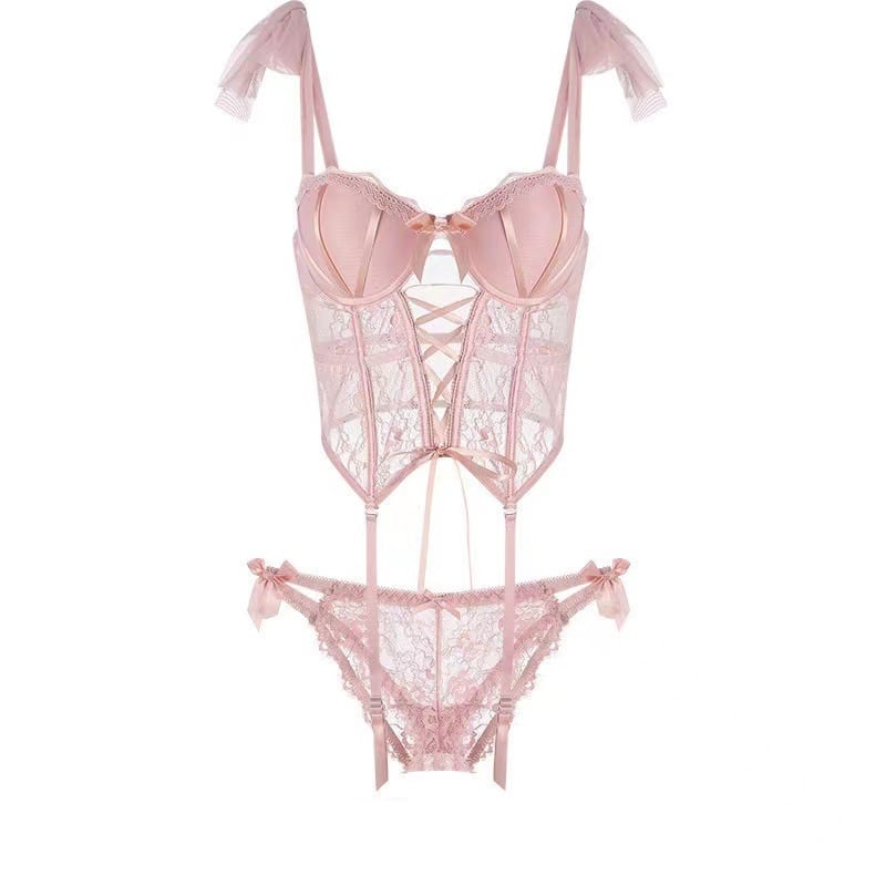 〔ランジェリー〕甘さで引き寄せる レースコルセットランジェリー(編み上げ×ガーターセット)