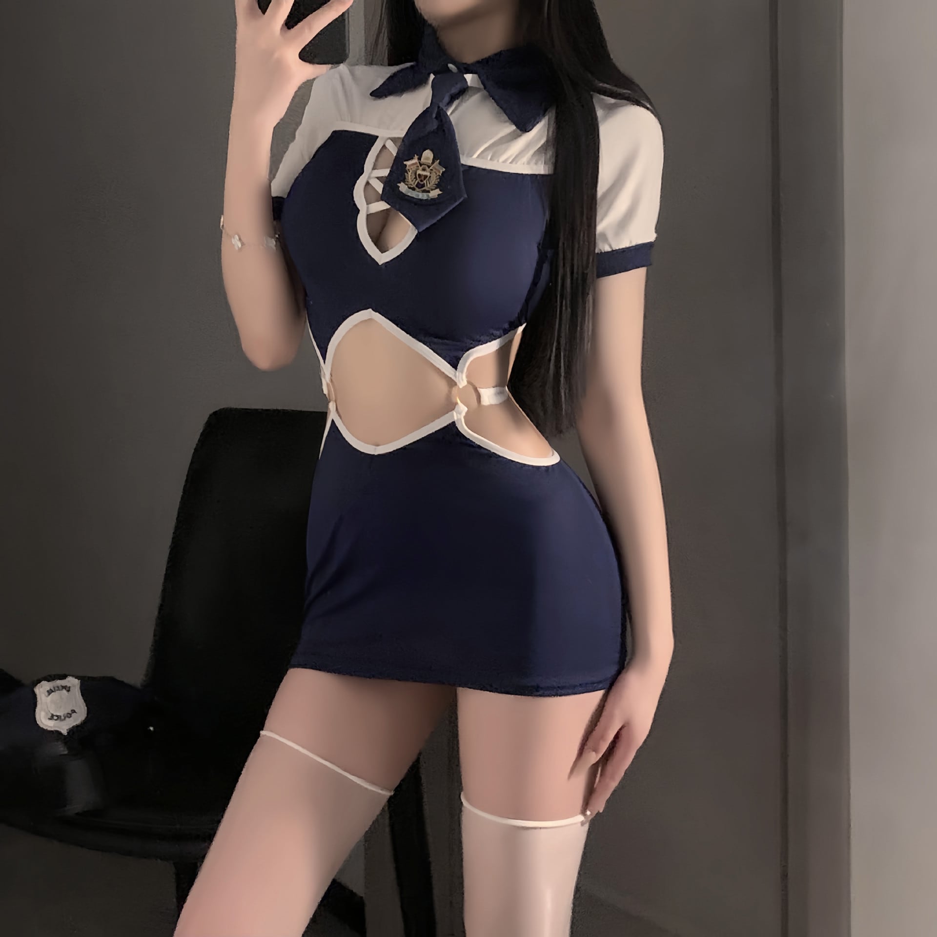 〔ポリス〕イベント・配信映えも叶える ネイビーポリス風ミニワンピース