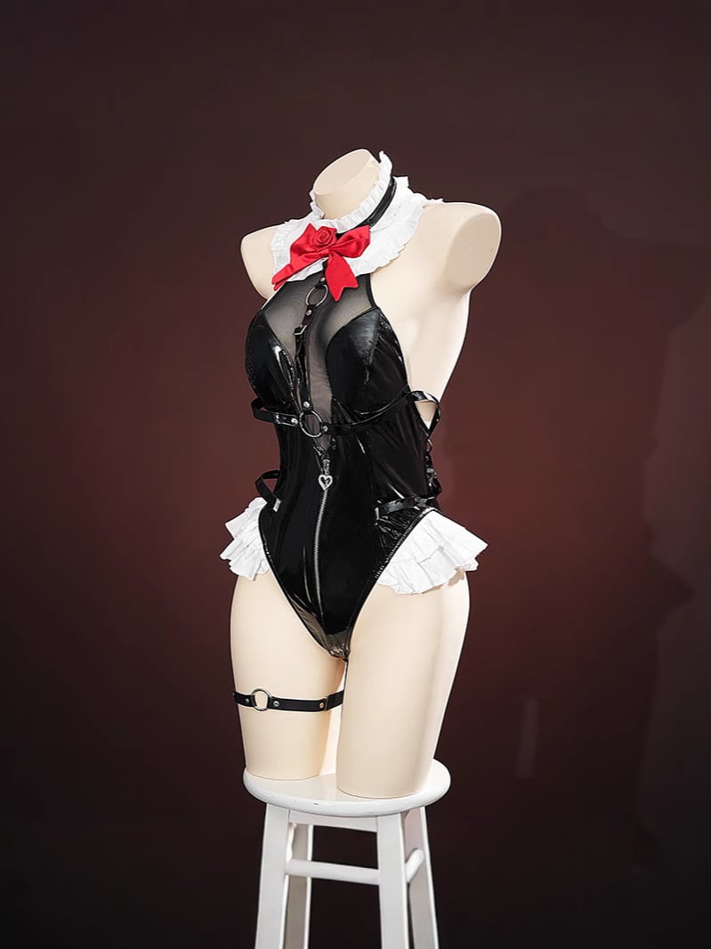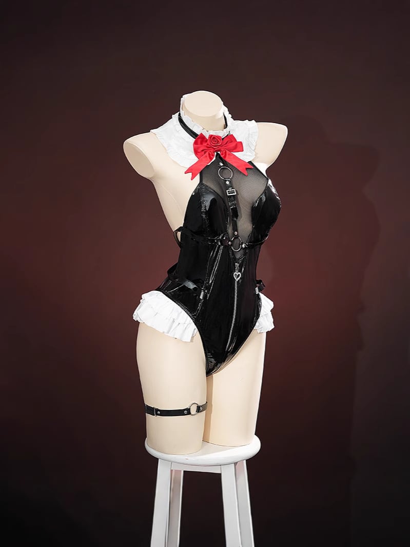 〔エナメル〕SNS・イベント映え♡メイド風エナメルボディスーツセット