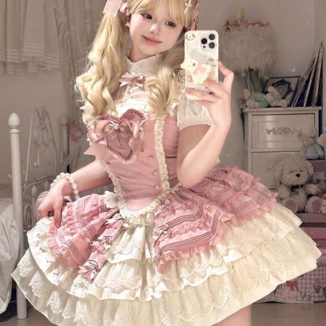〔ロリータ〕ときめきドールピンクロリータワンピース(フリル×リボン・プリンセスライン)