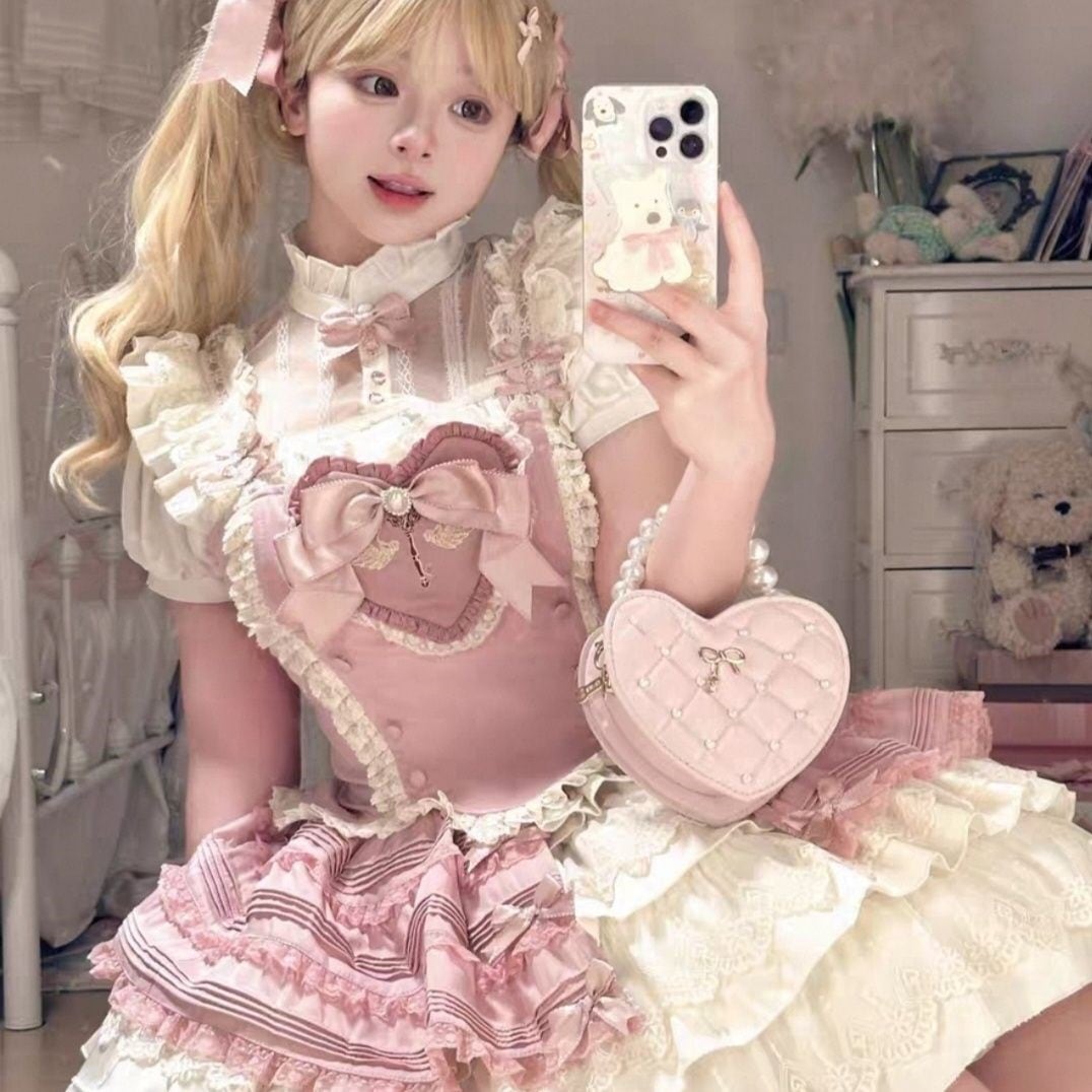 胸元の大きなリボンとハート風デザインが視線を集め、