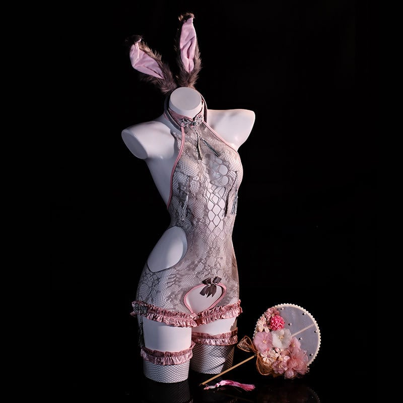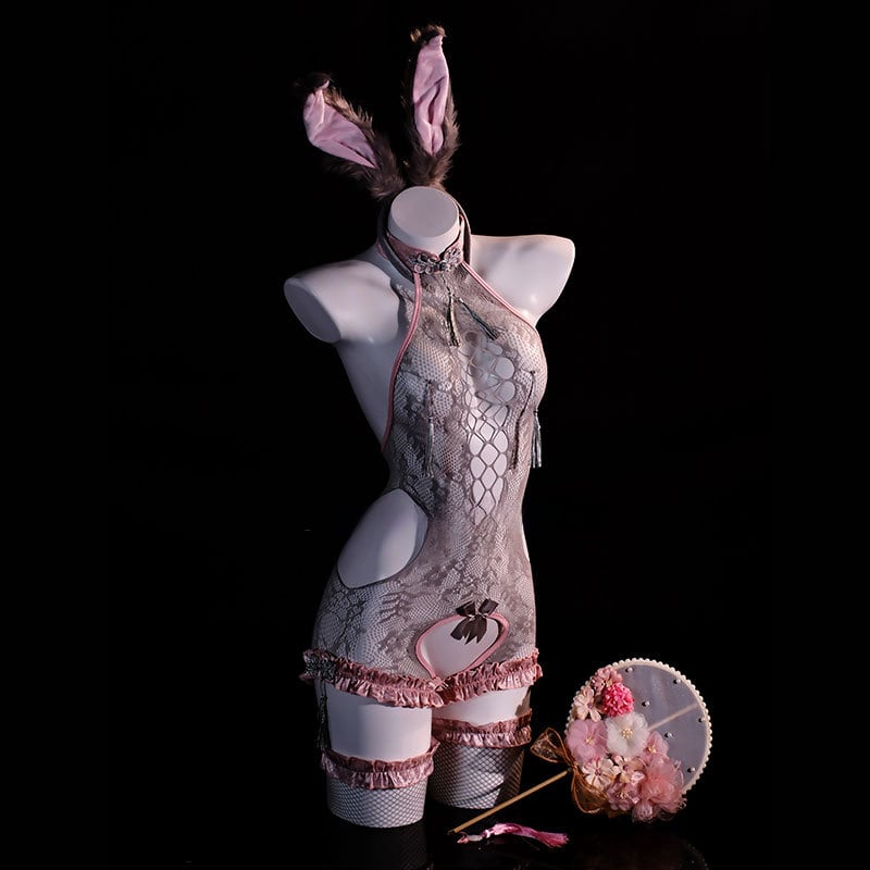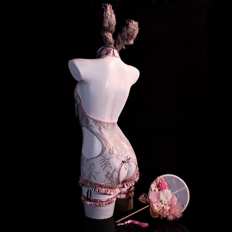 〔アニマル〕見慣れた彼女が甘く妖しく見える|うさ耳×フロントクロス チャイナ風ボディスーツセット